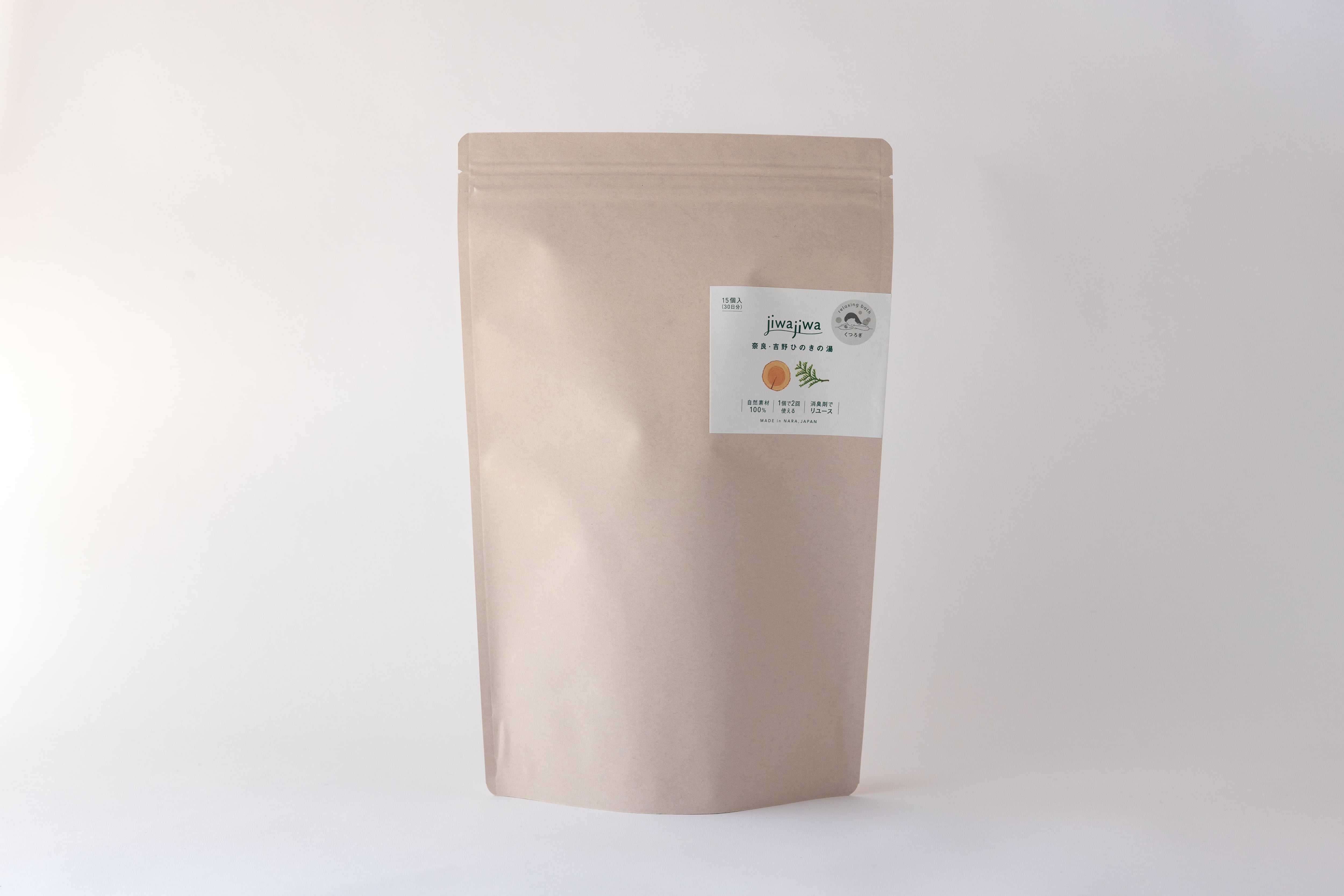 ひのきの削り粉と精油だけを巾着に詰めました。素材そのままを活かした、ほのかな香りとやさしい湯の色が心身をほぐしてくれます。経皮吸収が気になる方はもちろん、市販入浴剤の強い香り、鮮やかな湯色が苦手な方も使っていただけます。